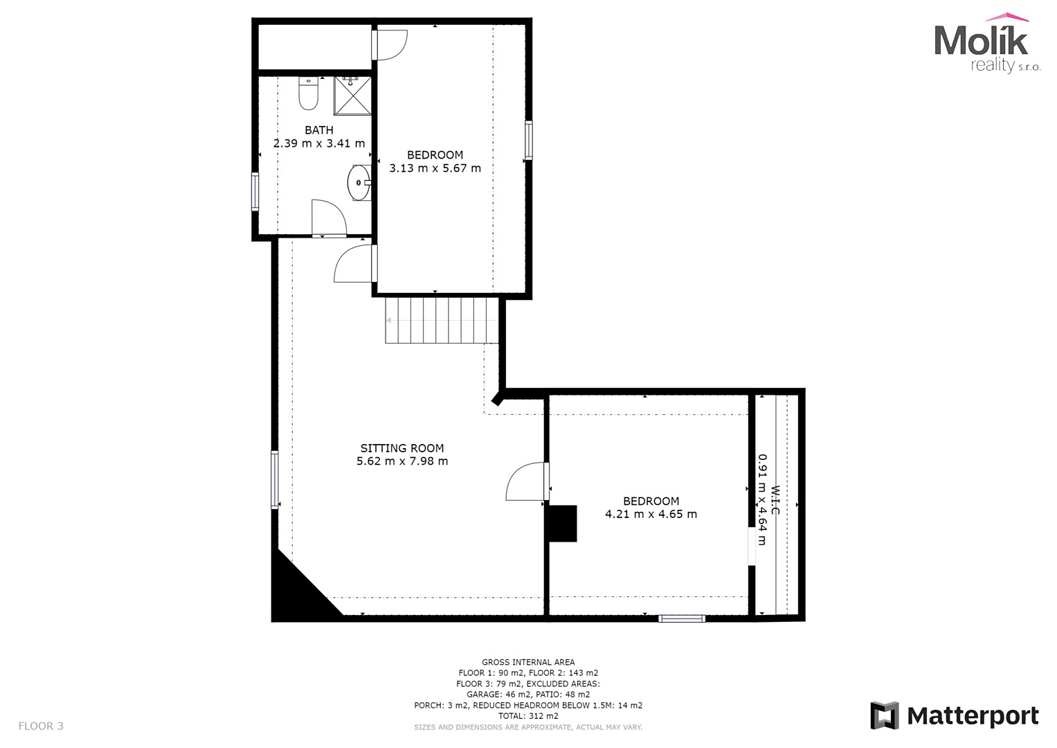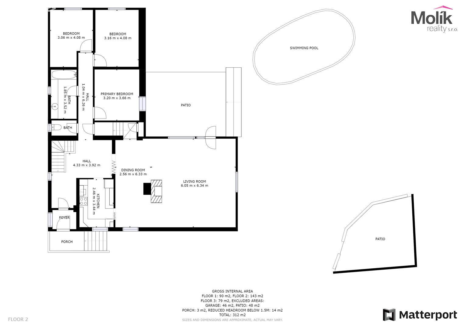 Celková užitná plocha domu je 312m² + garáž 46m².